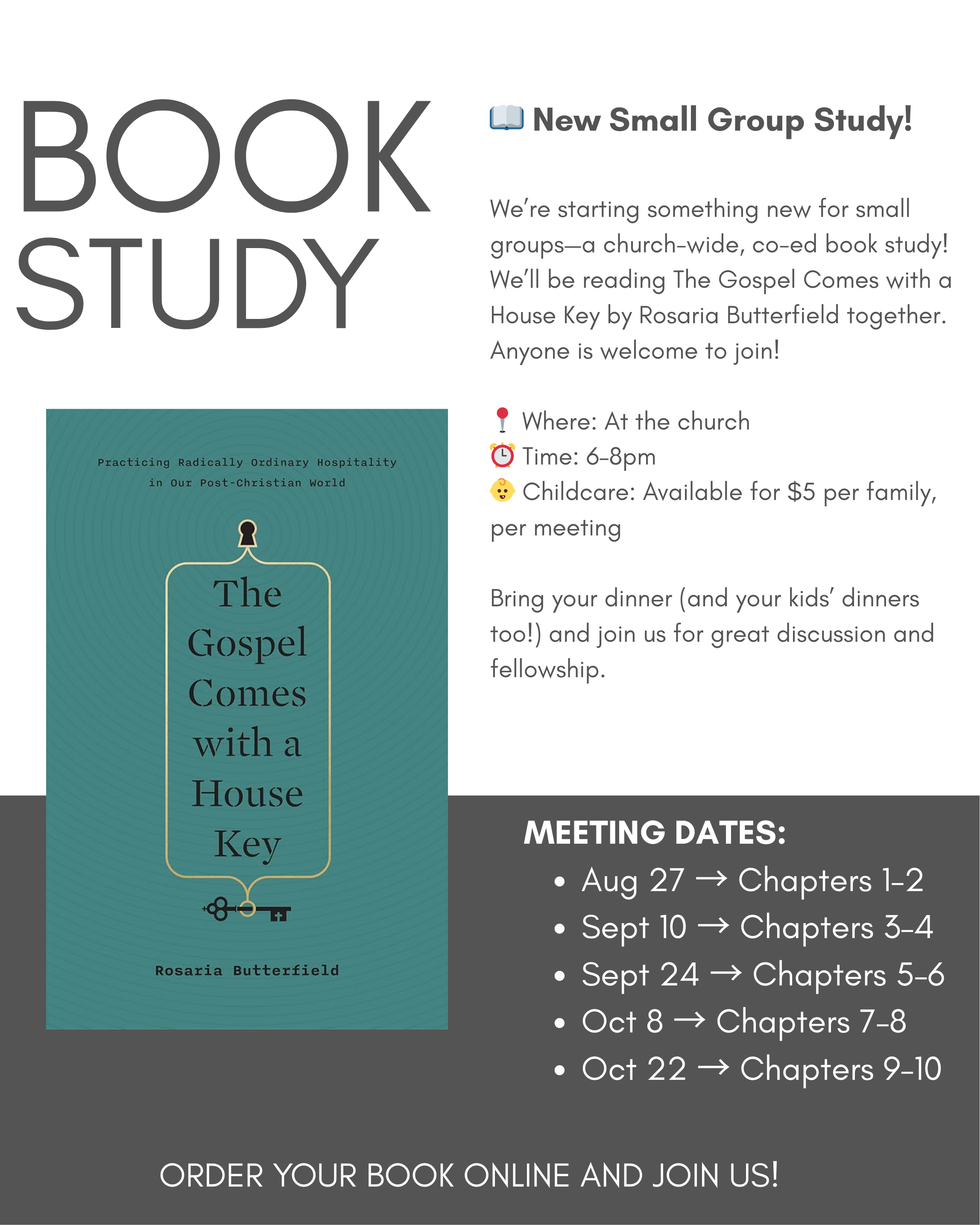 We’re kicking off a church-wide book study of The Gospel Comes with a House Key by Rosaria Butterfield!